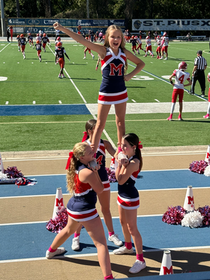 Cheerleaders in our Program are "zoned" for Milton High School, and typically come from several local Middle Schools, including Northwestern Middle School, Elkins Pointe Middle School, and various Private schools in the area. (Attendance now or in the future at any Fulton County School is not mandatory to participate in our program). Our cheerleaders often come up from one of the area Elementary Schools (Birmingham Falls, Manning Oaks, Summit Hill, Crabapple Crossing, Alpharetta, Sweet Apple, or Hembree Springs) and many have cheered in Rec League Programs like NAFL or RYFCA, or in competitive cheer programs.